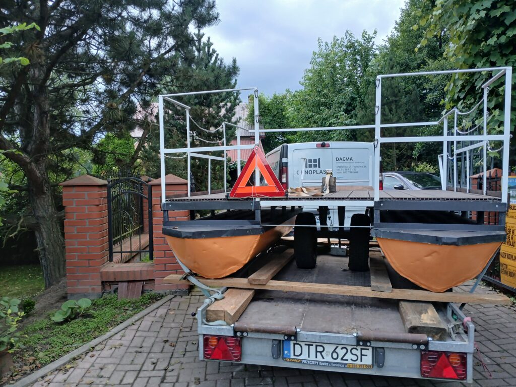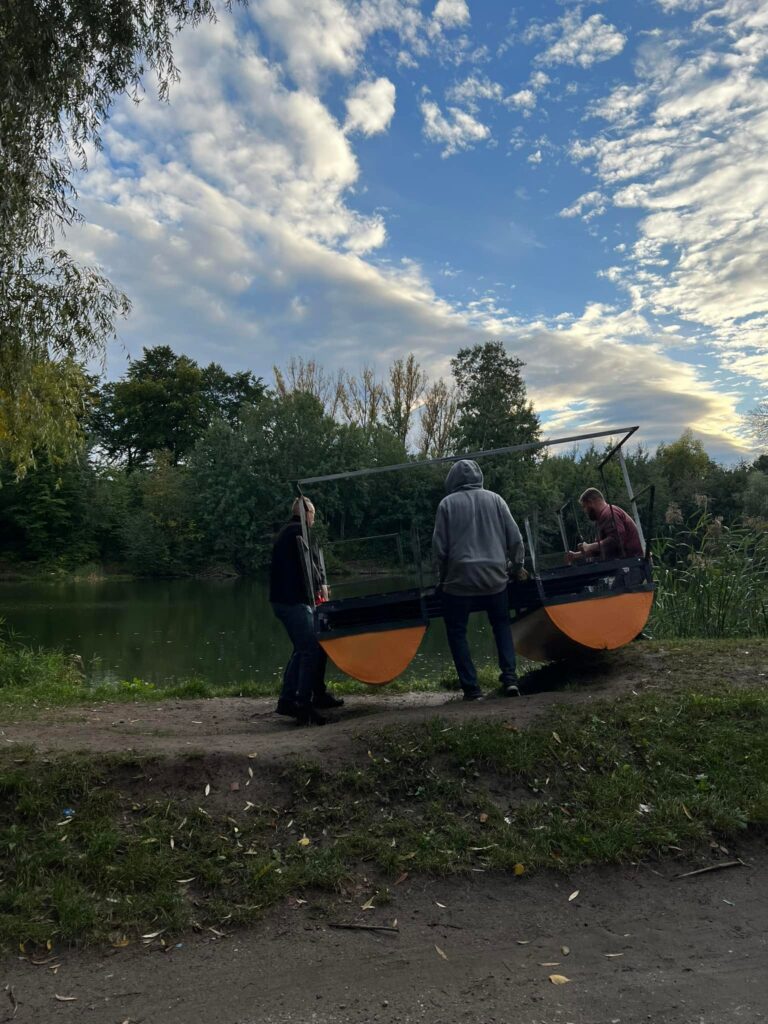 Pierwsze wodowanie pokazało nam, co należy jeszcze udoskonalić. Największym wyzwaniem okazało się samo przeniesienie platformy do wody. Potrzebne było rozwiązanie, które pozwoli swobodnie przemieszczać ją po lądzie i łatwo wodować. Zauważyliśmy też, że tył platformy wymaga poprawy stabilności. Postanowiliśmy przedłużyć pływaki i rozbudować całą konstrukcję oraz rozwiązać problem podwozia transportowego które po wodowaniu odczepimy od platformy.